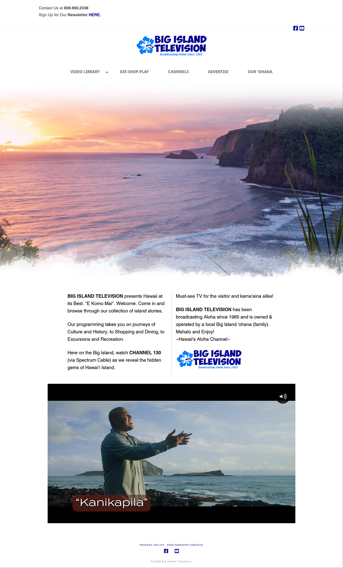 Local television channel. Big Island Television has been broadcasting aloha since 1985 and is owned & operated by a local Big Island ‘ohana (family).