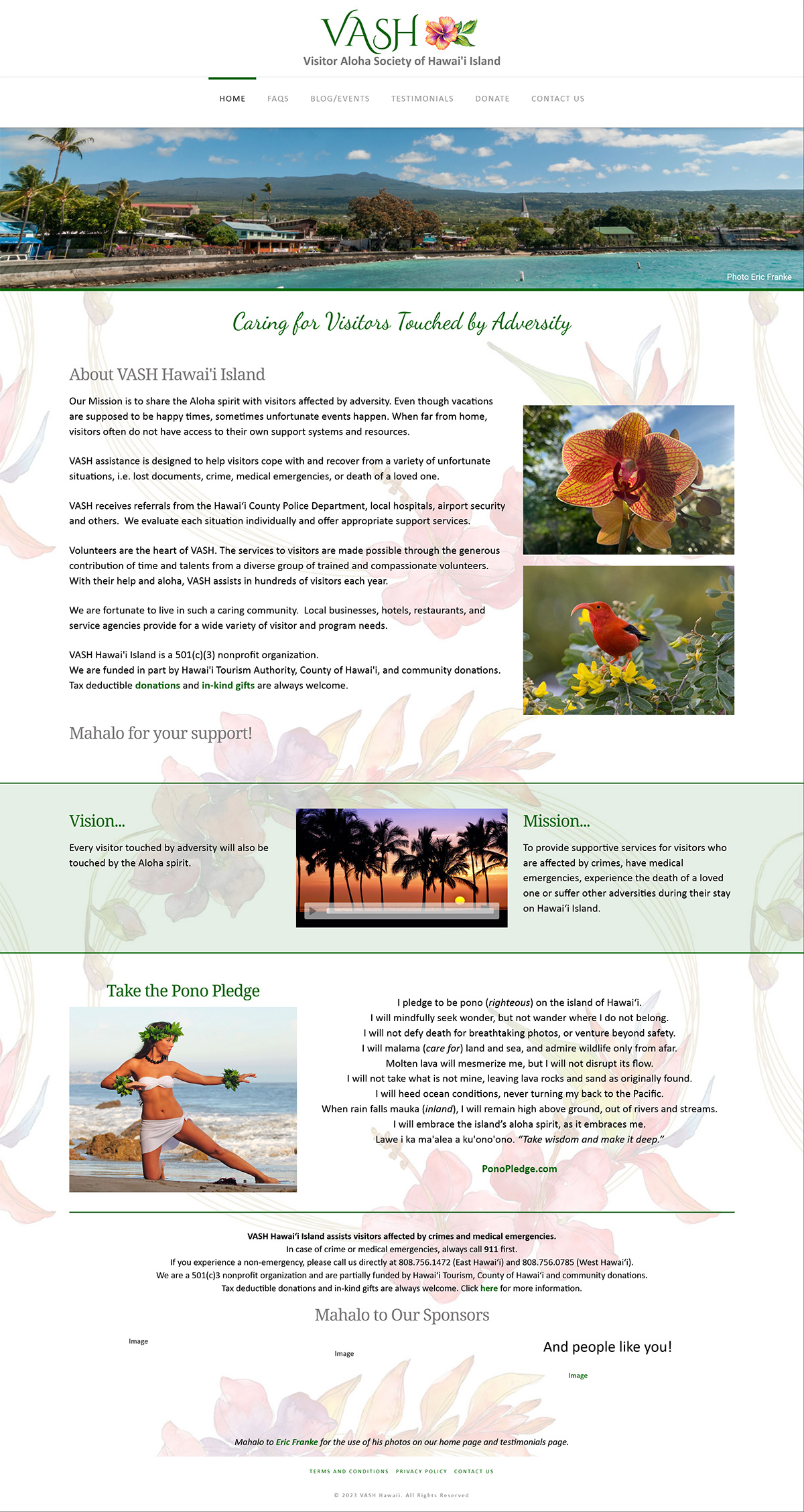 VASH Hawaiʻi Island assists visitors affected by crimes and medical emergencies. They are a 501(c)3 nonprofit organization and are partially funded by Hawaiʻi Tourism, County of Hawaiʻi and community donations.